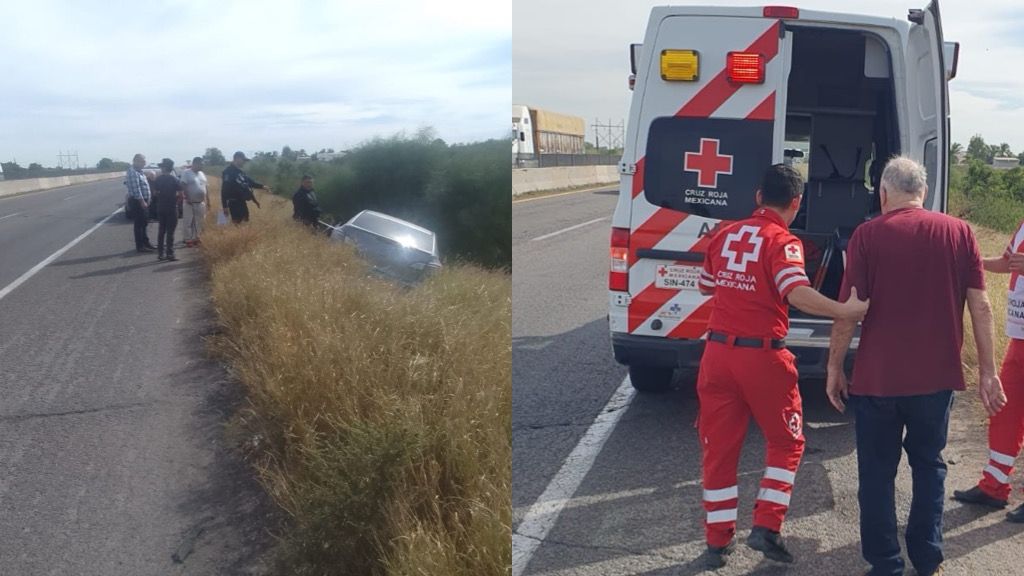 Guasave, Sinaloa a 12 de diciembre del 2023.- Un abuelito que conducía un automóvil sobre la carretera Internacional perdió el control del volante y terminó abajo de la cinta asfáltica cuando cruzaba por el municipio de Guasave.