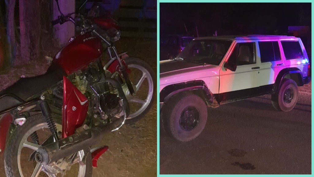 La otra unidad es una motocicleta tipo ligera, color rojo, modelo 2022, con placas de circulación del Estado de Sinaloa, conducida por Marcela “N” de 27 años de edad con domicilio en poblado El Chino de los López Guasave, al parecer elemento activo de la Secretaría de Seguridad Ciudadana (Policía).