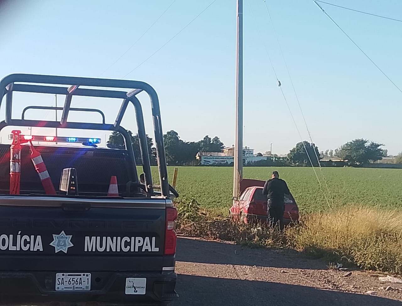 Sindicatura de El Burrión, Guasave, Sinaloa a 26 de diciembre del 2023.- Se registró un accidente de tránsito tipo salida de camino con choque contra objeto fijo (poste de CFE) frente al poblado El Burrión, Guasave.