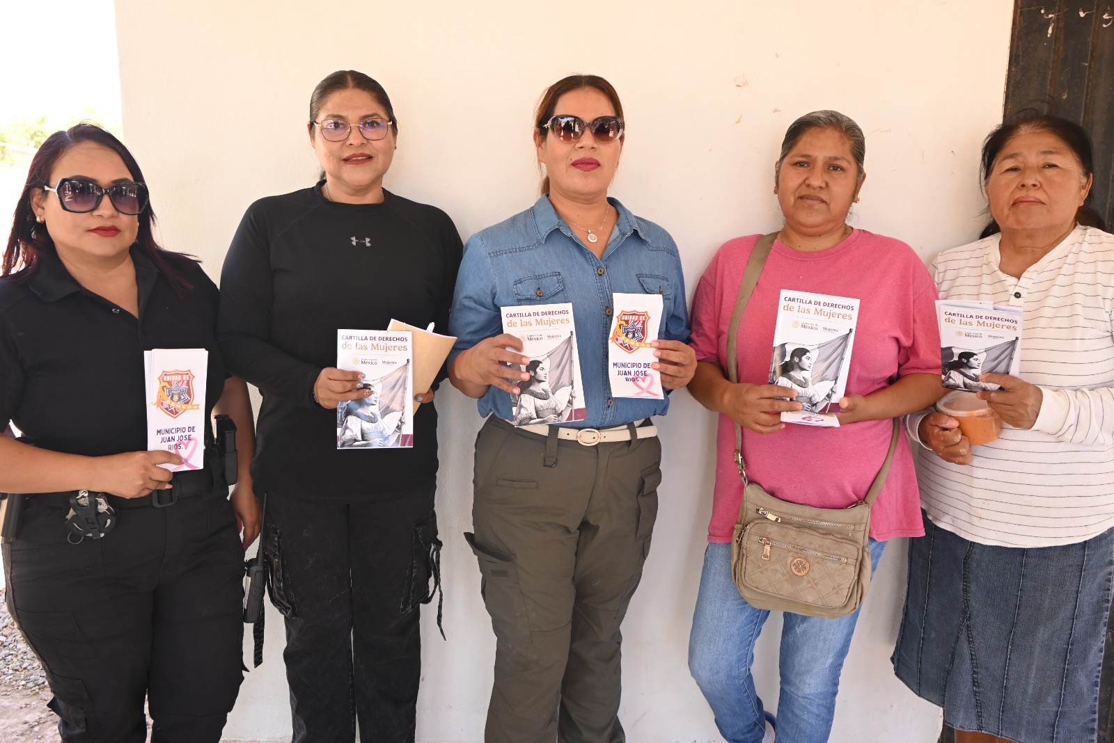 Juan José Ríos, Sinaloa a 09 de abril de 2026.- Esta mañana, la alcaldesa Evangelina Llanes Carreón, en compañía de Gobernación y dependencias del ayuntamiento, visitaron la comunidad de Lázaro Cárdenas para brindar información sobre la Cartilla de Derechos de las Mujeres y a su vez dar difusión al violentómetro entre la ciudadanía asistente.