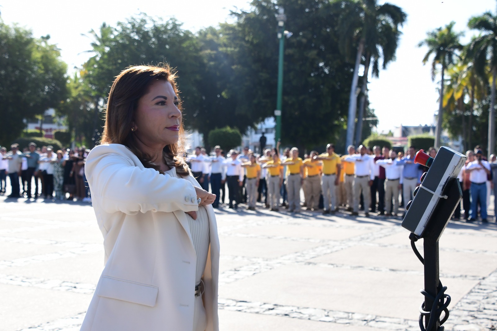Además de la Secretaria de Educación, estuvieron presentes el Dip. Kristiam Alexis Espinoza García, representante del H. Congreso del Estado; el Magistrado VII, Lic. Felipe Alberto Valle Nieblas, por parte del Supremo Tribunal de Justicia; y el Capitán 2/o. F.A.P.A. Antonio de Jesús Martínez Rangel, en representación de la 9/a. Zona Aérea Militar. Asimismo, asistieron representantes del Ayuntamiento de Culiacán, de la 9/a. Zona Militar y de la Guardia Nacional.