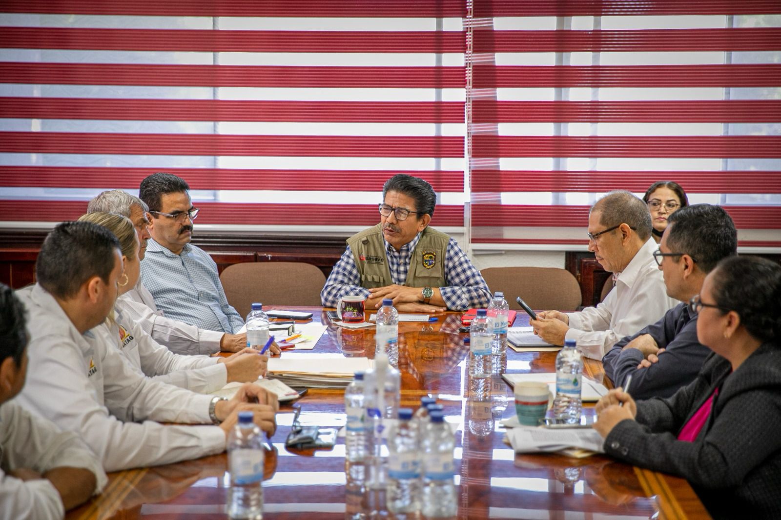 La reunión continúa con la presencia del secretario del Ayuntamiento, el tesorero municipal, Marco Antonio Báez Rochín; el director jurídico Luis Miguel González; el oficial mayor, Juan Luis de Anda y la directora de Recursos Humanos, Quendy Aurora Sañudo Ríos.