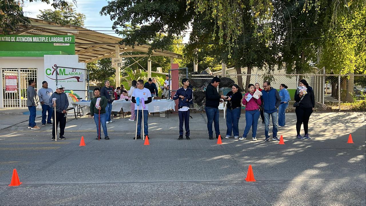 Con entusiasmo, creatividad y un profundo sentido de superación, alumnos del CAM 27 realizan cada jueves su tradicional venta de emprendimiento afuera del plantel, donde ofrecen productos elaborados por ellos mismos como trapeadores, bisutería, postres y artículos de corte y confección, entre ellos mandiles hechos a mano a muy bajo precio