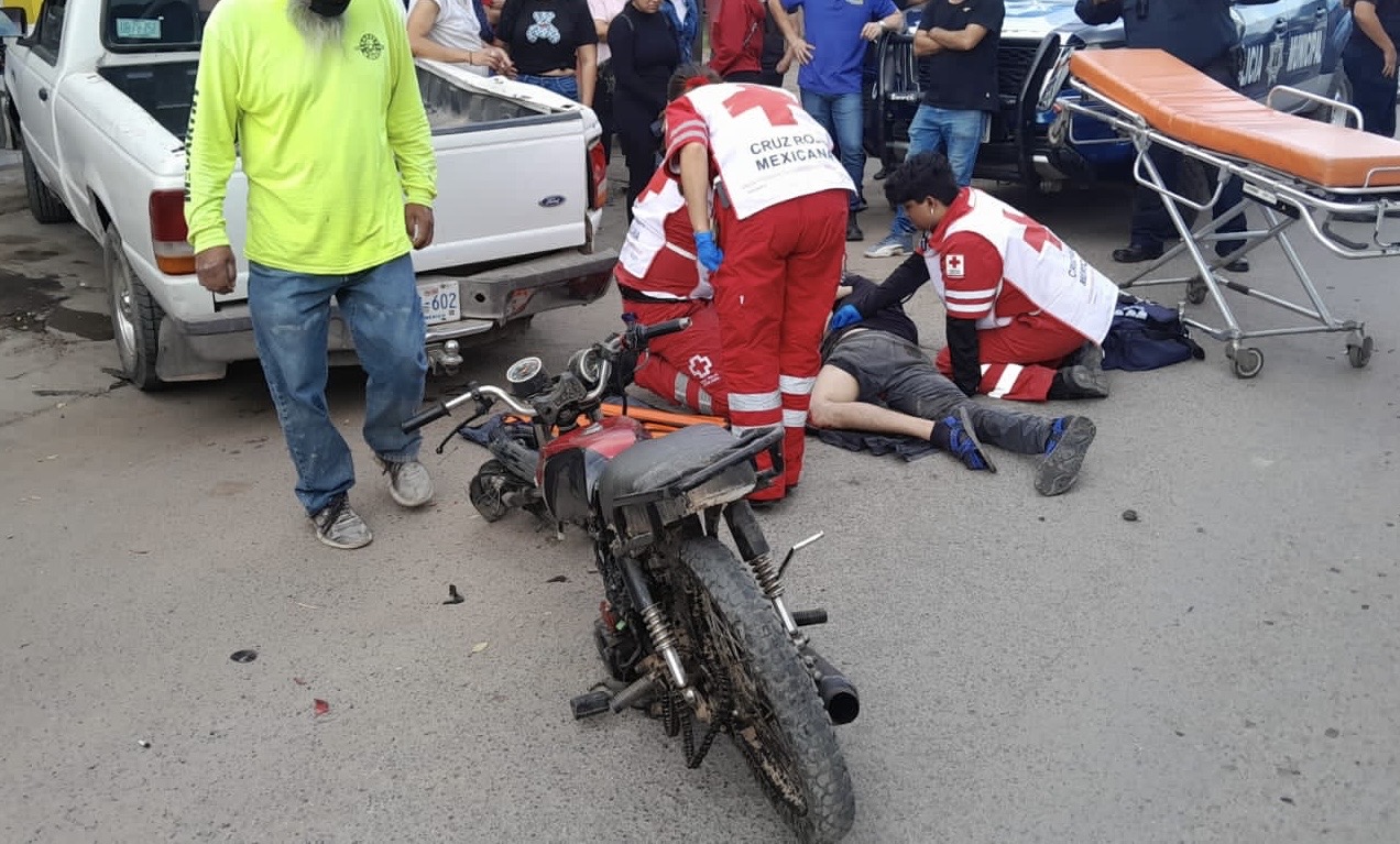 En este hecho resultó el motociclista el cual fue atendido por paramédicos de la Cruz Roja y posteriormente fue trasladado al hospital General.