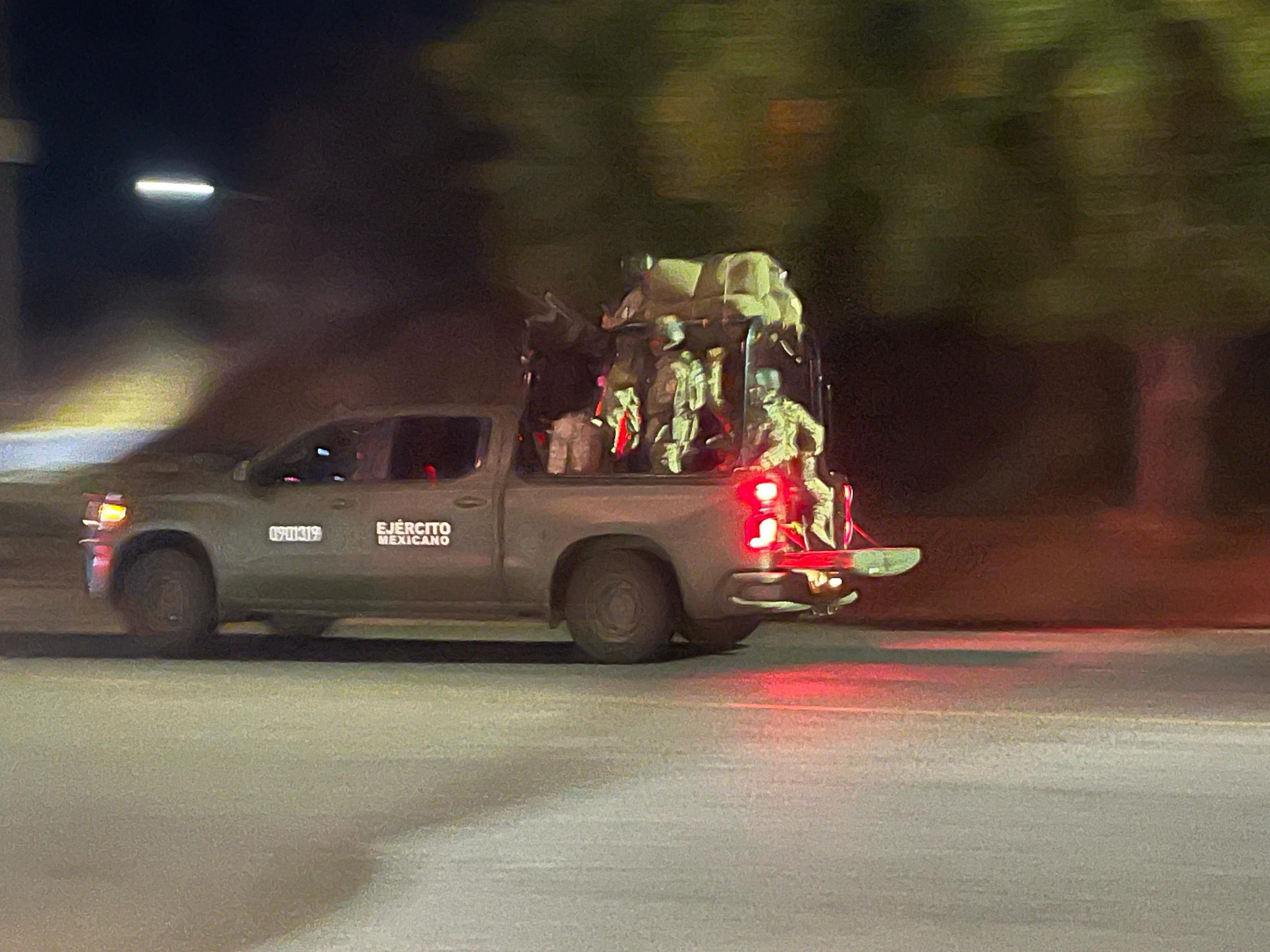 El convoy, compuesto por más de 20 patrullas tipo Pick Up —conocidas popularmente como “rápidas” o “zombies”—, un camión con decenas de elementos a bordo, una ambulancia militar y unidades de apoyo logístico, avanzó por el bulevar Juan S. Millán y posteriormente tomó la carretera hacia León Fonseca, para continuar sin detenerse hasta la cabecera municipal de Sinaloa de Leyva.