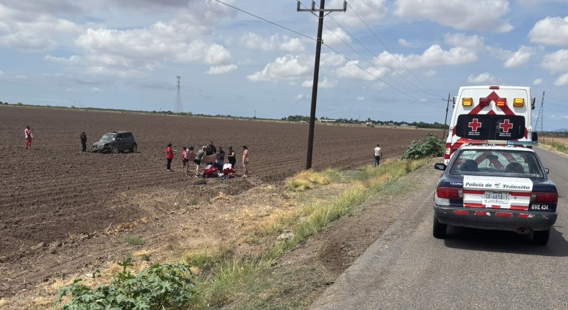 El accidente fue atendido por la unidad 434 de Movilidad Sustentable quienes al llegar al lugar señalado observaron una camioneta tipo vagoneta marca Kia, color gris, modelo 2010, entre los surcos de una parcela agrícola.
