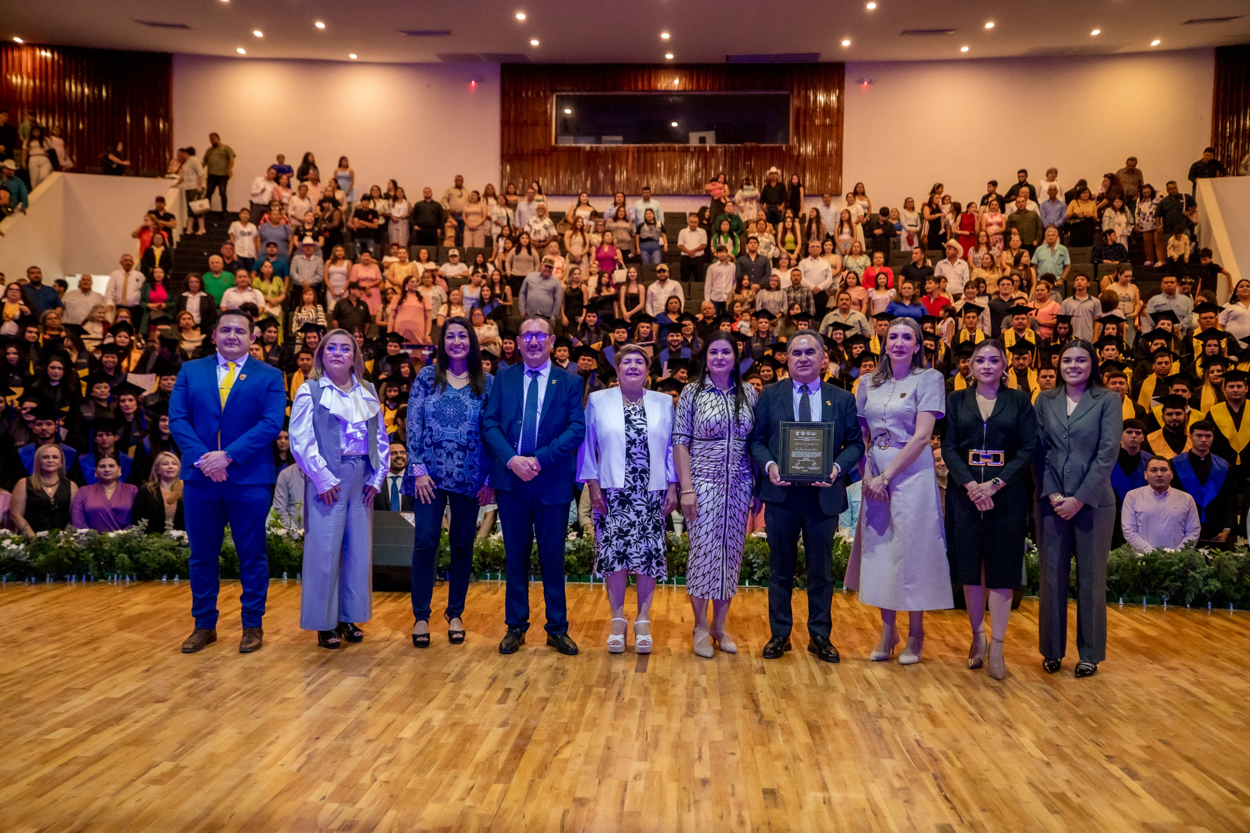 Dijo que reconocen a la educación superior como motor de cambio, por lo que los invitó a soñar en grande, “pero con los pies en la tierra”, a seguir preparándose e innovar, emprender, pero también a servir a construir, a liderear con conciencia social, porque el verdadero éxito no está en solo llegar lejos, sino en no olvidar para quién y por qué caminamos.