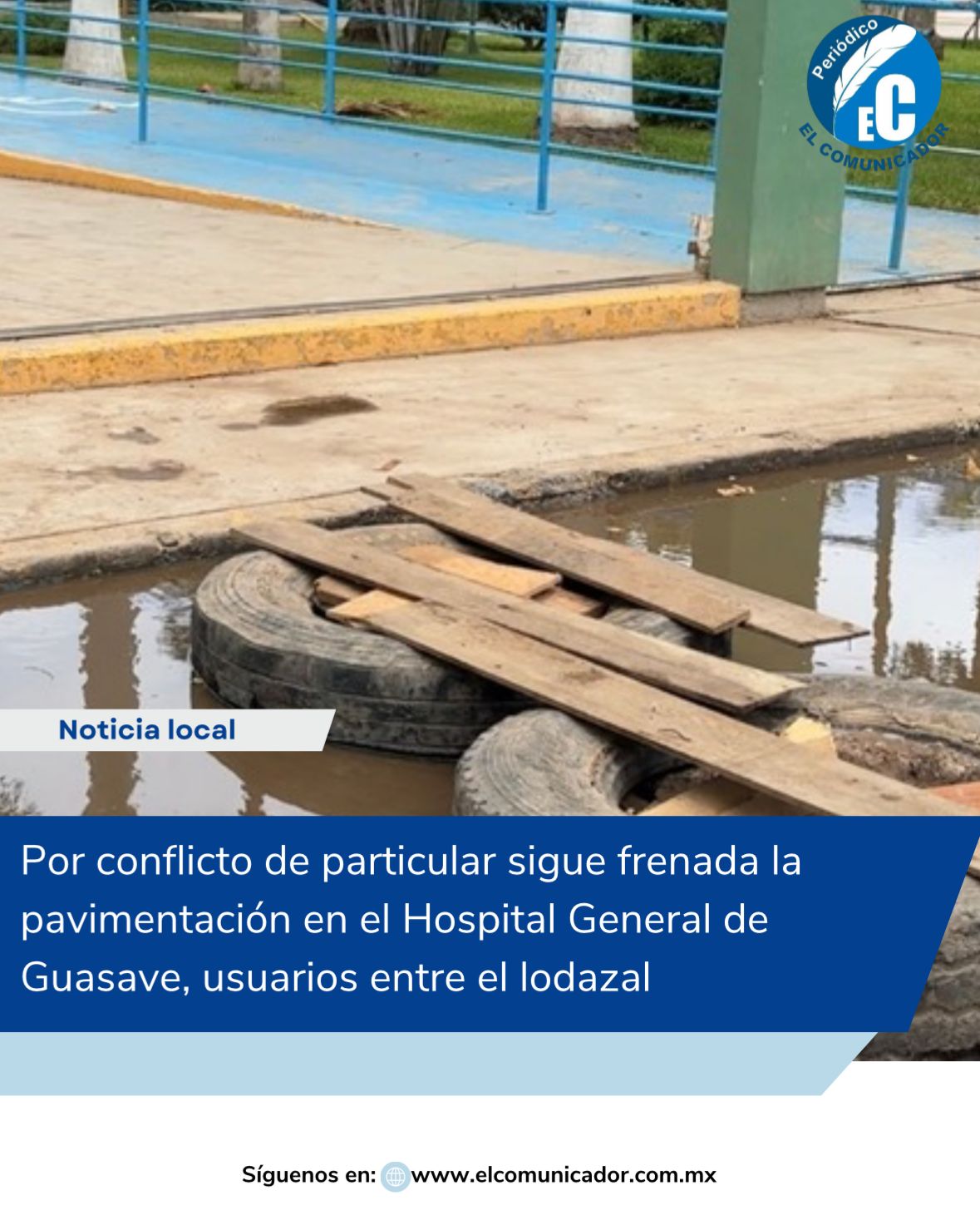 Los encharcamientos frente al Hospital General de Guasave, ahora IMSS-Bienestar, se han vuelto un problema constante para usuarios y personal médico, debido a la falta de pavimentación en el acceso principal al nosocomio. A pesar de que se tenía proyectada durante la pasada administración municipal una obra integral que incluía la pavimentación, electrificación e instalación de alumbrado, esta continuo sin concretarse a raíz de un conflicto con un particular.