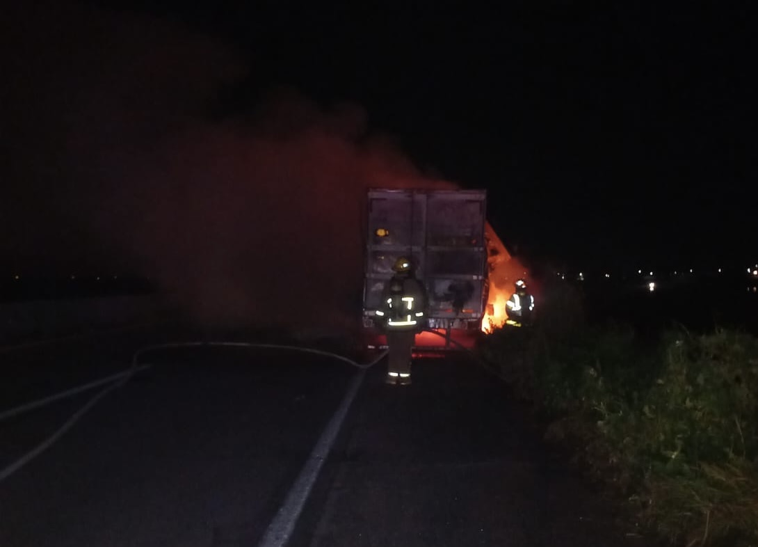 El trailer según el chofer, circulaba de manera normal con rumbo al norte cuando observo por el espejo retrovisor que se le venía incendiando la caja por causas hasta ahora desconocidas.