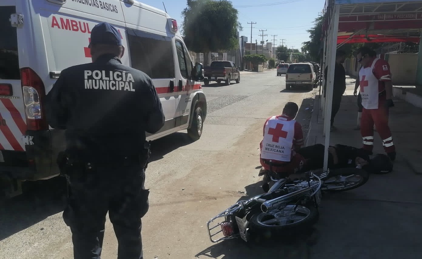 Guasave, Sinaloa a 26 de diciembre del 2023.- Ahora sobre la avenida Lázaro Cárdenas y la calle Acacias de la colonia del Bosque de esta ciudad, se registró un enésimo choque entre una camioneta y una motocicleta.